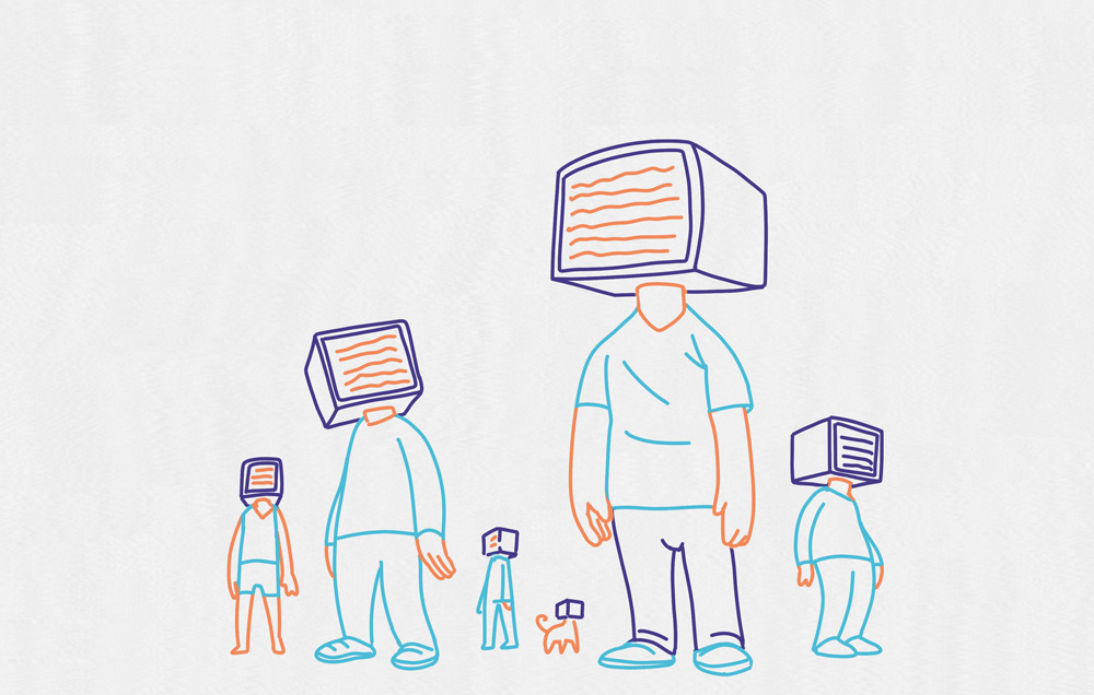 Des êtres humain avec un écran sur la tête